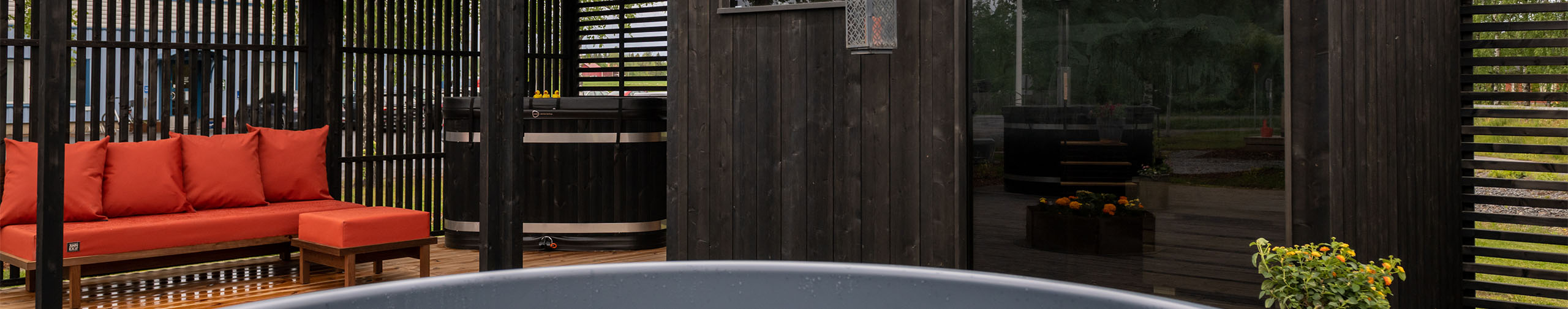 Ulkokuorena linjakas lämpökäsitelty havupuu paneeli. Lämpökäsittely parantaa puun lahonkestävyyttä ja vähentää kosteuselämistä. Tyylikäs ja syvän mustaksi pintakäsitelty lämpöpuu on pitkäikäinen, ja väri suojaa puuta lialta ja UV-säteilyltä. Tämä helppohoitoinen ja kierrätettävä paneelimateriaali on käytössä myös Kirami FinVision® Misty moduuleissa, ja yhdistää paljun sekä saunan ulkokuorensa ansioista kauniisti toisiinsa. Sisävärinä samettisen sileä “hippusävytetty” hennon läpikuultava vaaleanharmaa. Ajaton ja trendikäs harmaa väri on tyylikäs ja moneen puutarhaan sulautuva.
