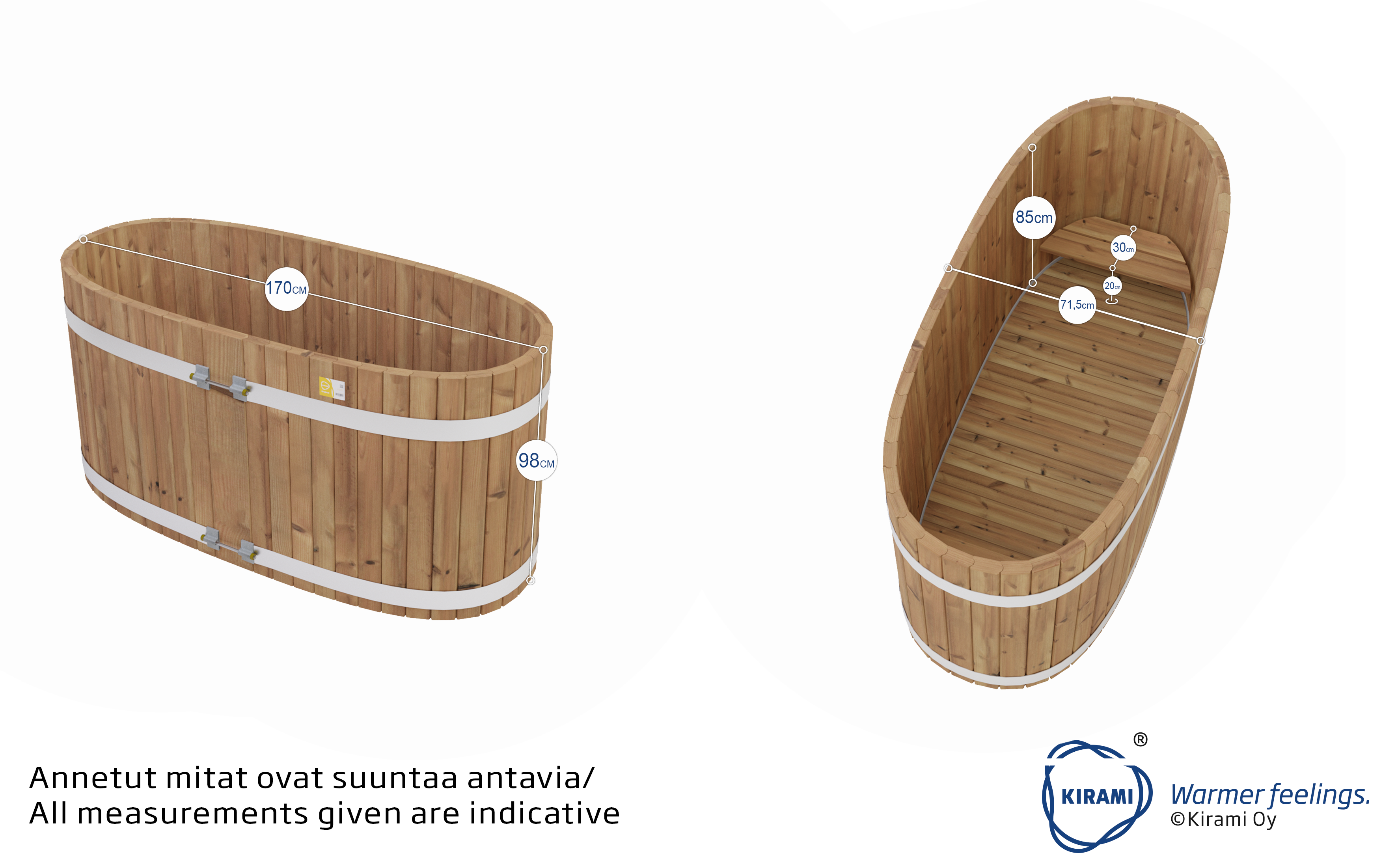 Helteisenä kesäpäivänä olisi ihanaa pulahtaa viileään altaaseen virkistymään, saunoessa löylyjen välillä vilvoittelemaan tai ehkä haluat kokea avantouinnin tarjoamia elämyksiä muulloinkin kuin talvella. Silloin Kiramin kastoallas on erinomainen valinta. Wood Tiny Dippy on muuten sama siro ja tyylikäs allas kuin kamiinallinen Wood Tiny, mutta ilman lämmityslaitetta eli kamiinaa. Virkisty yksin tai kaksin!