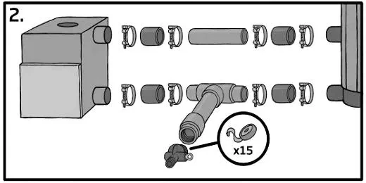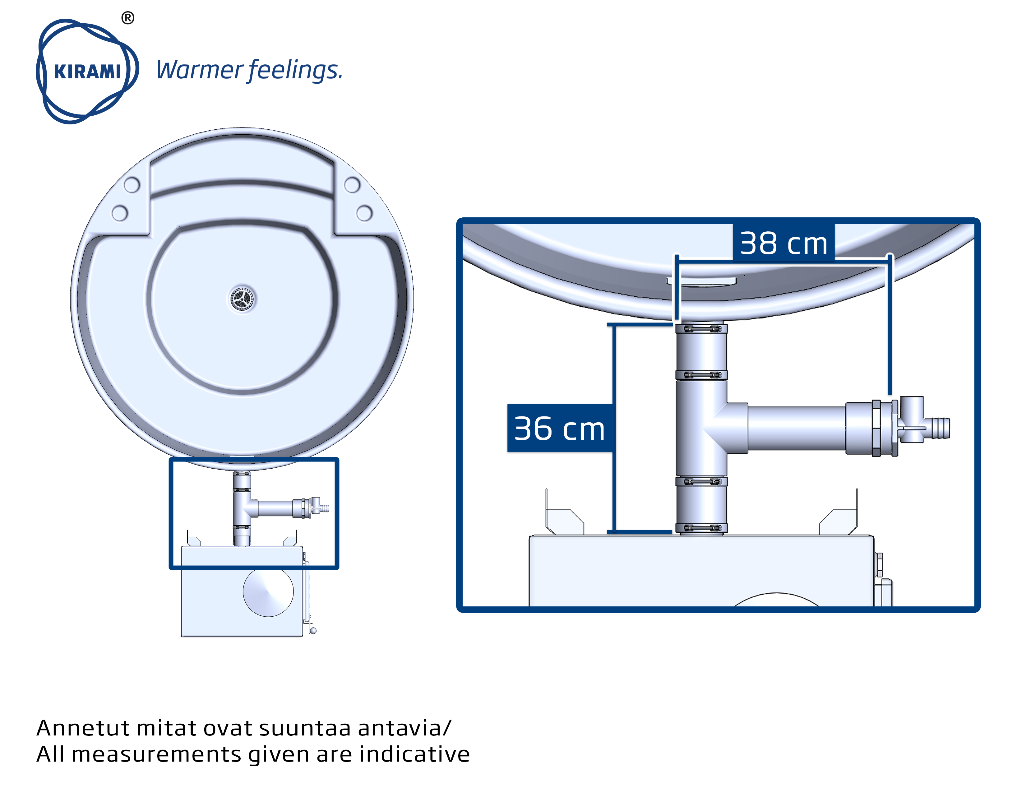Sarja sisältää tarvittavat osat poistoventtiilin asentamiseen kamiinan ja altaan väliin. Tuote ei sisällä Kiramin poistoventtiiliä, paljun mukana tuleva poistoventtiili siirretään välisarjan poistoon. Paljussa olevea poistoputki suljetaan sarjan mukana toimitettavalla tulpalla. Välipoistosarja kasvattaa kamiinan ja altaan välin noin 36cm mittaiseksi.